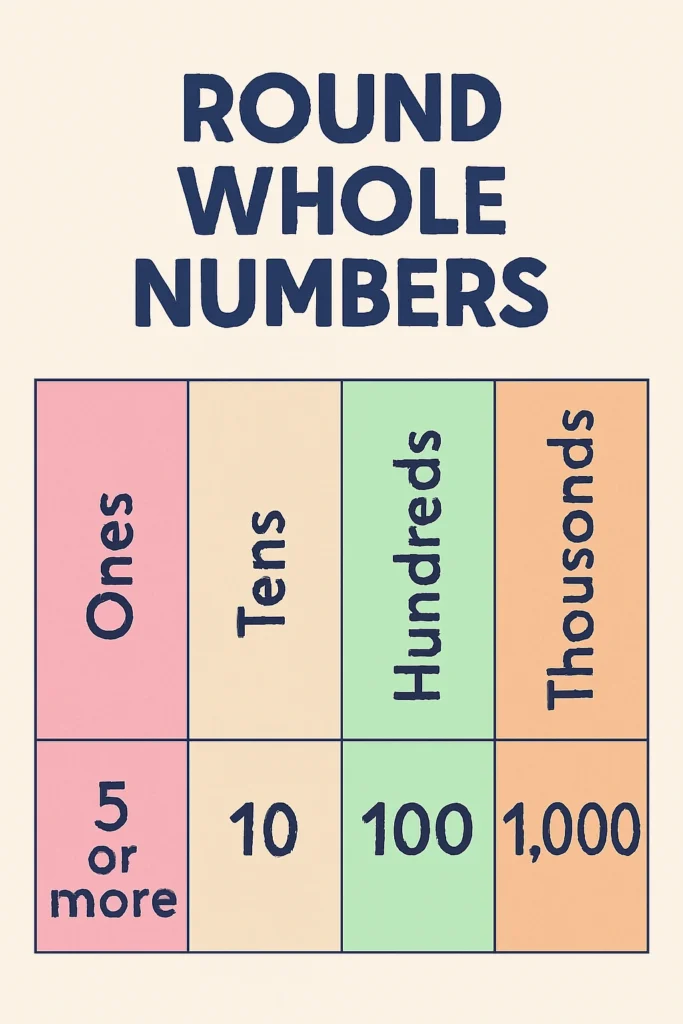 Rounding whole numbers is one of the simplest math skills β yet it’s also one of the most useful. We use rounding every day when estimating costs, measurements, time, and big quantities. This guide breaks rounding into simple steps, explains rounding rules clearly, and includes examples you can follow instantly.